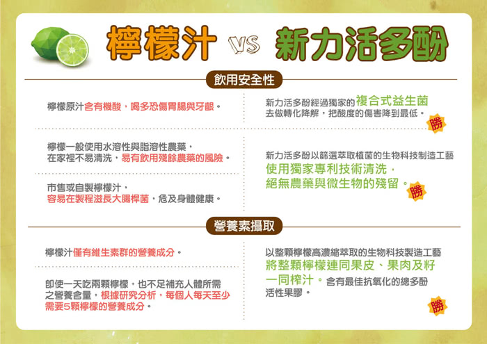 A. 新力活多酚採全天然整顆檸檬鮮果發酵,所以不同時期檸檬產出的多酚當然就會有所差異。