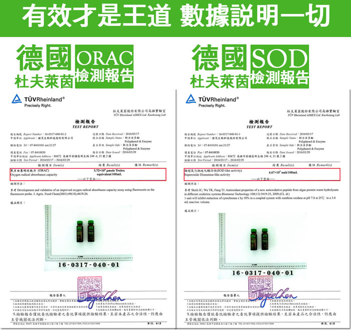 SOD 酵素:它是超氧化物岐化?,可以防衛或隔絕不好的東西,並能去除多餘的不好的東西,也是一種蛋白質酵素型抗氧化劑。