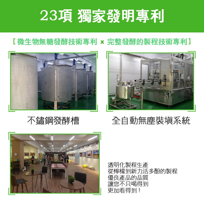 科學發酵:是以科學植菌,使用固定合格登錄封存的菌群發酵,菌種是經過鑑定為可食性,對人體有益,低熱量不造成危害,並且充填完成後經過安全殺菌,為消費者的食安做最佳的把關,對身體健康是百益無害。